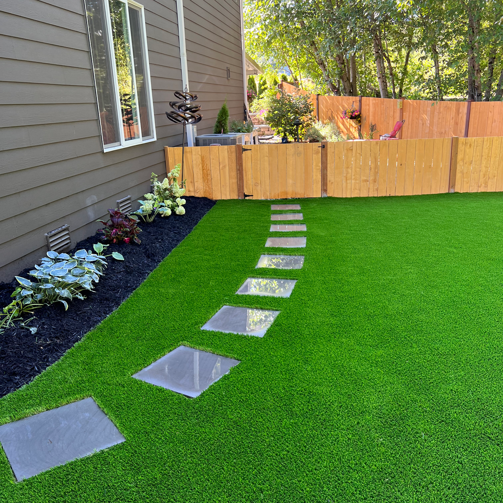 This project focuses on the use of artificial turf in residential landscapes and outdoor spaces. The images showcase artificial turf installations in backyard settings, including areas with pools, trampolines, and playground equipment, highlighting the aesthetic and functional benefits of artificial turf in creating inviting and low-maintenance outdoor environments.